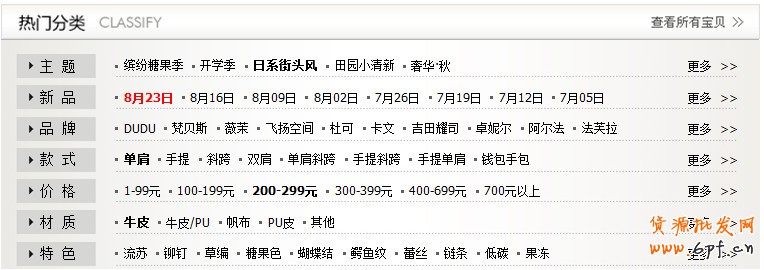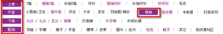 7、除了以上常見的幾種方式,根據不同產品還有很多分類方式,比如皮具類會有材質的區分,服裝類會有款式的區分等等。