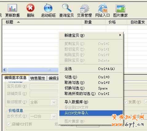 YE!好壯觀吧?!哈哈!!!這么多的寶貝要上傳,也是需要技巧的哦!在列表中的任意位置點擊鼠標右鍵,選擇【全選】,
