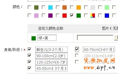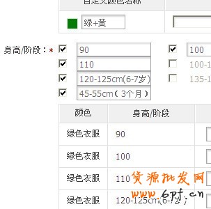 首先要選顏色,只有選了顏色,才能設置身高哦,然后在身高處打幾個勾勾,你要設幾個碼就打幾個勾,比如說是90-130,就打五個勾
