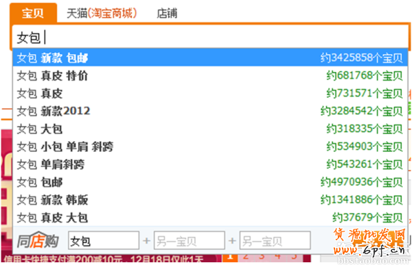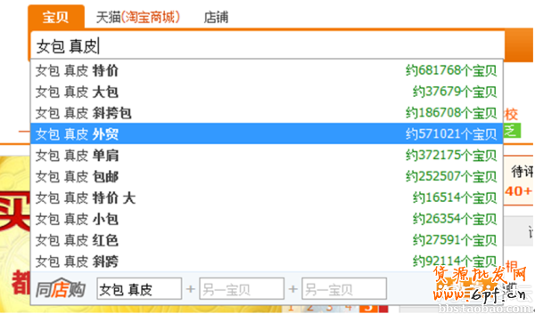 這里有兩個(gè)途徑,一個(gè)途徑還是從淘寶搜索欄中得到。比如你的類(lèi)目是女包,那你就輸入女包。