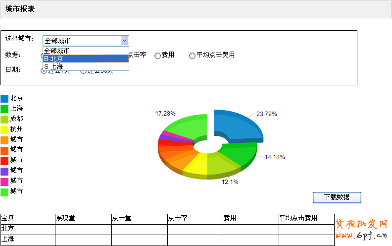 通過地域報表的數據,可以看到細分到城市的點擊情況。您可以針對點擊量多的地域進行重點投放,而且可以對這個地區的買家包郵或者進行運費優惠政策,做到更精準的營銷,帶來更多的成交!