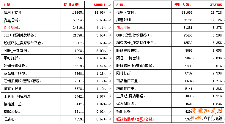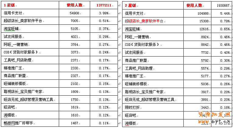 不同層級的賣家需求的服務是不一樣的,下文中把每個層級最受歡迎的20個服務羅列了出來。當然,是否采用工具就看各位所處的行業和店鋪的實際情況。