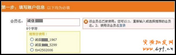 情況三:會員名已經(jīng)被他人使用。建議可以在后面加上數(shù)字來區(qū)分,或者想一個其它的;