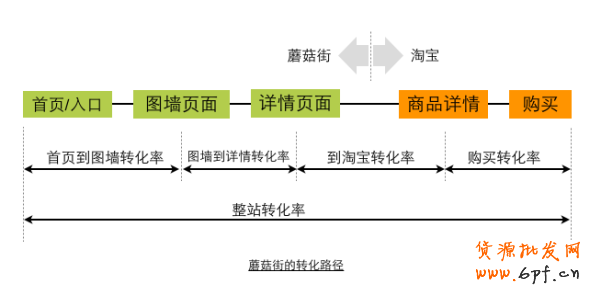 圖中可以看到,蘑菇街的瀏覽-購買路徑,存在“在蘑菇街逛”和“去淘寶買”兩個部分。