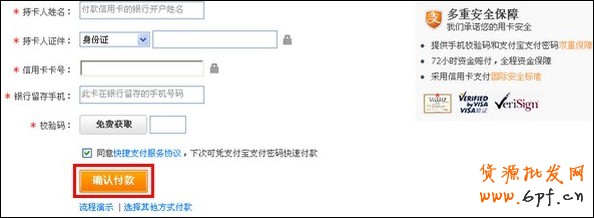2、填寫頁面上的信息,點擊【確認付款】;(注:手機號碼為該銀行卡在銀行開戶時預留的手機號碼)