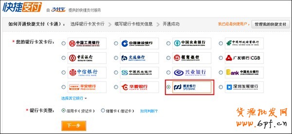 浦發銀行信用卡在快捷支付頻道中開通方式: