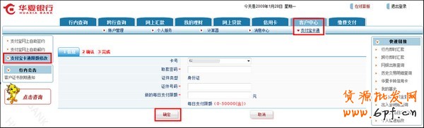 3)在【客戶(hù)中心】——【支付寶卡通】下面選擇【支付寶卡通限額修改】,并在輸入各項(xiàng)要素后點(diǎn)擊【確定】,再次確認(rèn)信息;