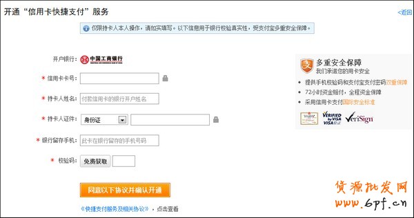 工行信用卡快捷支付開(kāi)通方式一:在支付過(guò)程中開(kāi)通