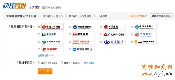 工行信用卡快捷支付開(kāi)通方式二:在【快捷支付】頻道開(kāi)通