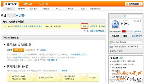 1、打開(kāi)www.alipay.com,登錄支付寶賬戶(hù)——我的支付寶: