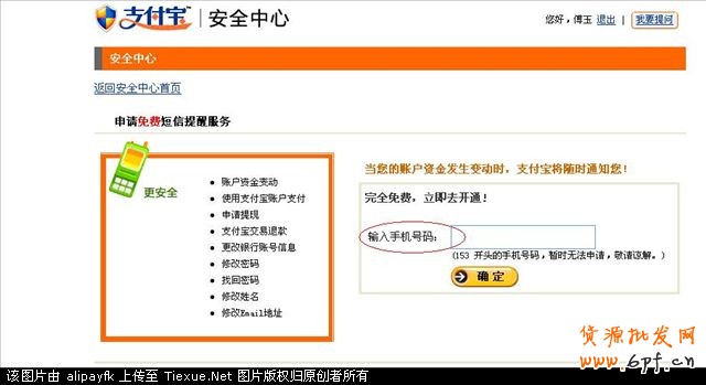 如果,你沒有開通支付寶短信提醒服務(wù)(免費(fèi)),系統(tǒng)會提示你開通。只有開通支付寶短信提醒服務(wù),才能使用支付寶卡通的服務(wù),以保證支付寶卡通的支付能最及時的通知到你。