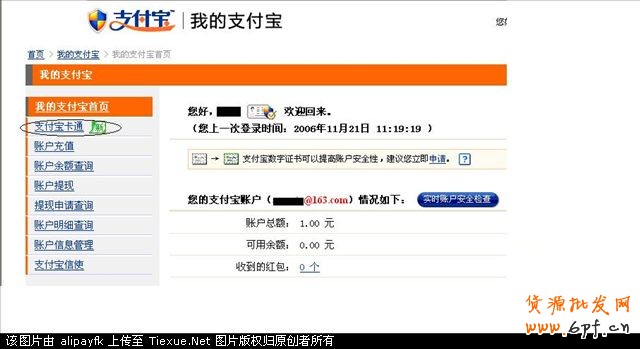 回到家中,登陸我的支付寶(www.alipay.com),激活支付寶龍卡和支付寶帳戶的綁定。