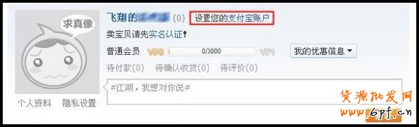 若填寫注冊信息時,未選擇使用該手機創建支付寶賬戶,可進入“我的淘寶”首頁綁定支付寶賬戶。