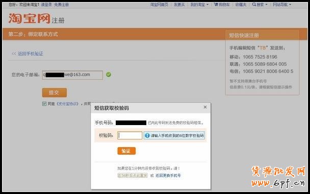 綁定郵箱作為聯系方式時,需要通過一個手機號來收取動態校驗碼,該手機號可以是任意手機號(包括已在淘寶注冊過的手機號)