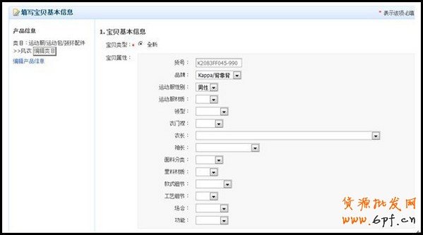 1.2.3點擊上傳新產(chǎn)品之后頁面會跳轉(zhuǎn)至產(chǎn)品信息(寶貝模板)的編輯頁面,如圖5: