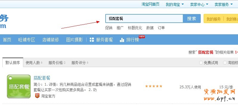 您可以進入“賣家中心”—“營銷中心”—“促銷管理”頁面選擇“搭配套餐”點“馬上訂購”,或進入“賣家中心”—“軟件服務”—“我要訂購”頁面搜索出“搭配套餐”進行訂購。
