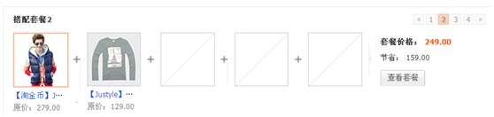 b、指導(dǎo)客戶做時(shí)尚搭配,有一大部分客戶會(huì)喜歡寶貝頁面中模特的全身或者部分搭配方式,那么我們可以順?biāo)浦郏鲆粋€(gè)搭配套餐,優(yōu)惠搭配可以促動(dòng)顧客的購買欲。例如: