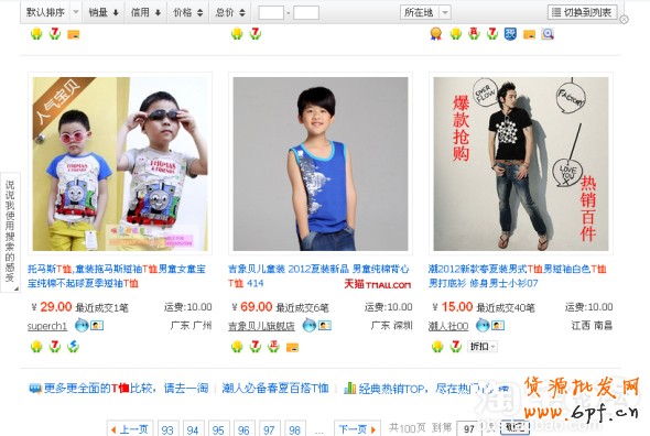 你們去淘寶搜索一下,查看是不是有消保都排在前面,那些沒有消保到底哪里去了?比如搜索T恤這詞,我想翻到一百頁以后,都找不到沒有消保的賣家吧!其實T恤這詞就97頁,還不到一百頁,那些沒有消保的賣家會不會被淘寶屏蔽自然搜索呢?哪位高手能回答我一下?也許有人不會去搜索,我截圖給大家看一下: