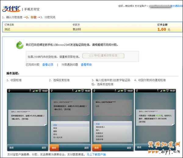 手機(jī)淘寶訂單支付操作流程:如果用戶已經(jīng)綁定了手機(jī),點(diǎn)擊“獲取免費(fèi)短信”,可以接收包含驗(yàn)證碼或支付鏈接的短信。如果符合短信支付條件,跳轉(zhuǎn)到短信支付頁(yè)面;如果不符合短信支付條件,跳轉(zhuǎn)到WAP支付頁(yè)面。