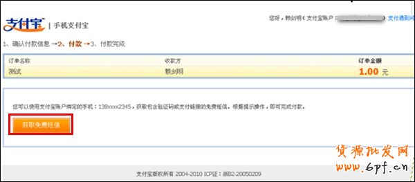 如果用戶沒有綁定手機(jī),輸入手機(jī)號(hào)碼,點(diǎn)擊“獲取免費(fèi)短信”,可以接收包含支付鏈接的短信,并跳轉(zhuǎn)到WAP支付頁(yè)面。