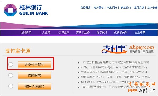 桂林銀行快捷支付(卡通)開通方式二:在支付寶端