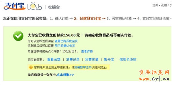 3、付款成功,同時(shí)交行信用卡快捷支付方式已開(kāi)通,下次付款時(shí)只需輸入支付密碼即可完成付款。