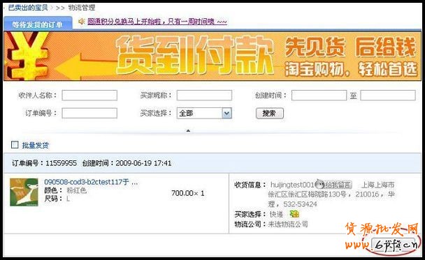 1、在已賣出的寶貝中,找到貨到付款的訂單(如圖: