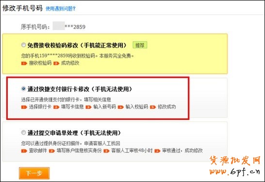 方式三:通過(guò)快捷支付銀行卡修改手機(jī)號(hào)碼