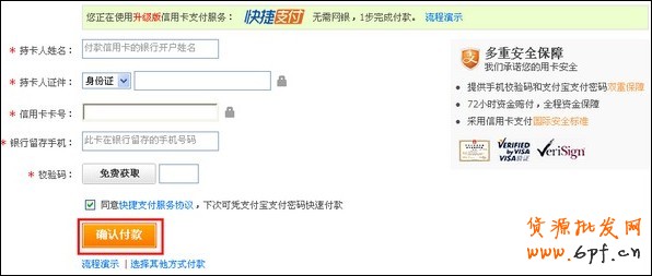 2、填寫頁面上的信息(注:手機號碼為銀行預留的號碼,收校驗碼),點擊【確認付款】;