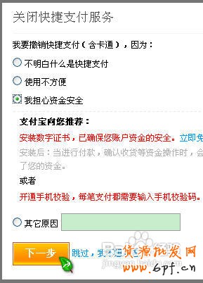 我點擊的是“我擔心資金安全”。點擊“下一步”。