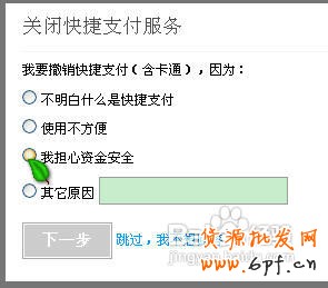 在撤銷快捷支付的原因上隨便點擊一個理由。