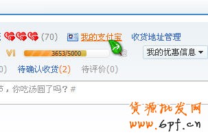 接下來點擊購物等級標志(心、鉆)旁邊的“我的支付寶”按鈕。