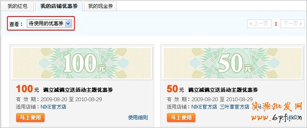 買家可進入“我的拍拍>我是買家>我的優惠卡券”,點擊標簽“我的店鋪優惠券”,即可看到自己所擁有且未使用的店鋪優惠券。查看已使用或已過期的優惠券,可點擊頁面左上方的優惠券類型下拉框進行選擇即可。