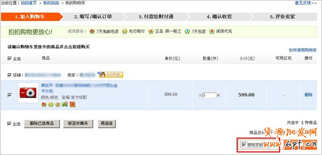 b)先將商品放入購物車的買家,在后續(xù)進(jìn)入購物車時必須勾選“貨到付款”選項,如下圖所示。