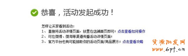 答:活動(dòng)頁面的投放由賣家自行安排,不會(huì)自動(dòng)在首頁生成。建議通過導(dǎo)航或廣告圖放到店內(nèi)做為促銷活動(dòng),或自行投放到其他渠道。