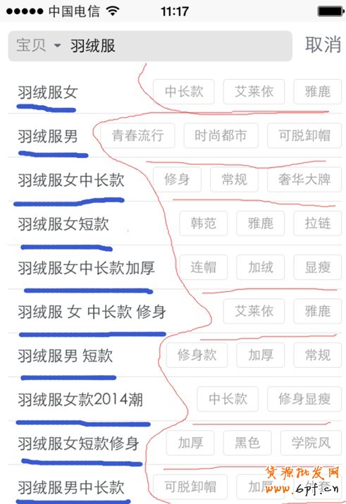 我們先來看看手機(jī)淘寶千人千面是怎么個原理:以前我們搜索一個產(chǎn)品,比如:羽絨服,那么展現(xiàn)的將是羽絨服這個主關(guān)鍵詞的寶貝,所展現(xiàn)的寶貝的標(biāo)題主詞權(quán)重必須是羽絨服這個詞,而這個詞的相關(guān)詞也最多展現(xiàn)在下拉欄上推薦,而現(xiàn)在除了這些詞,還有了標(biāo)簽詞。