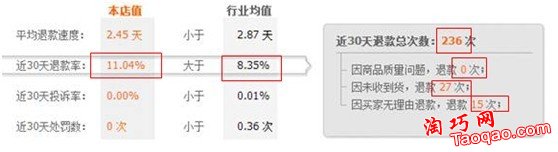 計算方法:退款率=近30天成功退款筆數/近30天支付寶交易筆數*100%;