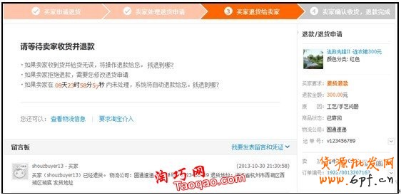 第一步:在淘寶上發起退貨退款申請,查看如何申請退款;