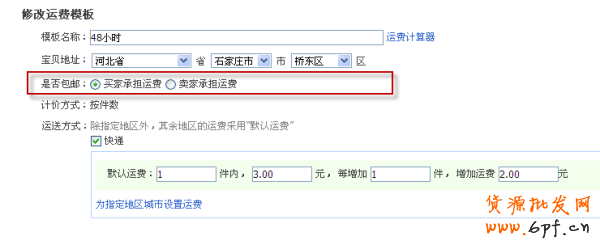 選中【買家承擔(dān)運(yùn)費(fèi)】單選項(xiàng)后,可以在運(yùn)費(fèi)模板上設(shè)置運(yùn)費(fèi)