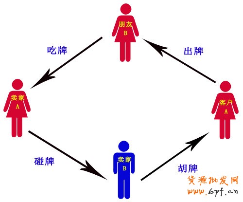 首先,賣家A先出牌,然后朋友B吃牌,接著賣家A碰牌,最后賣家B胡牌!