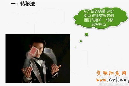 轉移法從字面上也是非常好理解是我們從產品的銷量、顧客的好評、產品的功能賣點和使用效果等等來側面打動顧客轉移顧客關注的價格焦點。這里有一個顧客要買塑身衣,但我們店里是兩件以上才包郵的哦,通過溝通顧客是想一件也包郵,首先我們是委婉拒絕了下(一定要帶上旺旺的賣萌表情哦)隨后馬上掏出一個小贈品引誘引誘一下顧客,這就轉移了顧客關注的重點。接著我們再說了塑身衣的效果(因為顧客買的就是效果):每天穿幾個小時再加上適量的運動,一兩個月下來效果不錯哦。這就借用了產品效果的轉移。或我們可以利用產品的賣點、銷量、回頭客等來轉移顧客關注的焦點,并且把塑身衣的賣點“塑身”轉速給顧客,顧客就很高興下單了。因為這就是顧客想要的,她買的就是效果,有了效果價格就是其次的了,再便宜白送給她沒效果不是她要的目的。顧客想要塑身的效果,我們就要把它的賣點很清楚地向顧客說明介紹促成顧客下單提高轉化率。