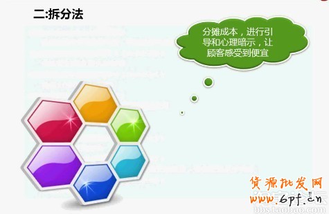 有一些產品的特點是可以拆分來的,比如一些藥品、保健品拆分到每天,或者我們一個產品使用年限長拆分到沒一年,這都是一種拆分法,通過拆分價格分攤到平均的時間段讓顧客感覺到每天、每月、每年使用的價格是非常的便宜。這里也是有個顧客想買保健品,但覺得價位高了,一套要700多呢,顧客也說可以少買兩件,我們當然說可以啦,我們要一定要順著買家的思路和語言來來說,我們要說顧客想聽的話。隨后我們又轉過來給顧客算了筆帳:這產品您可以吃十個月呢,這樣算下來一天才不到三塊錢,試問三塊錢能做什么你,現在人對健康是非常關注的有健康的身體才能賺跟多的錢哦,呵呵!我們只要把這個帳算出來顧客就會覺得是呀一天才三塊錢是不貴,不論是為自己的健康投資還是為家人的健康投資都是非常值得的,顧客也就很爽快的下單了。這就是我們所說的拆分發,很多產品都可以這樣進行拆分的,大家也可以在自己的工作中總結出一定的經驗。