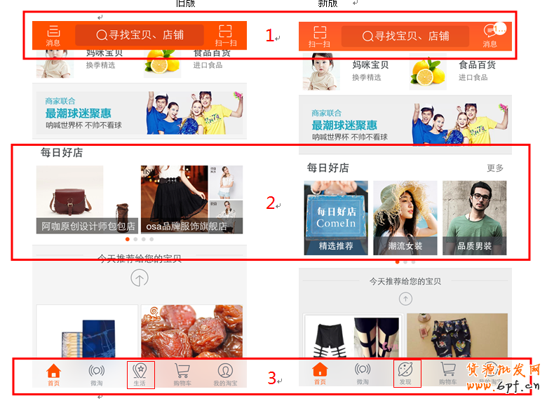 這次手機淘寶app改動的地方很多,不可能一一說清。但是不管改動多大無非是以下三種情況: