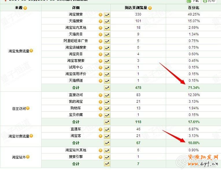 自然流量35-50%、直接點(diǎn)擊流量15-20%、直通車(chē)流量35-40%、淘寶客5-10%