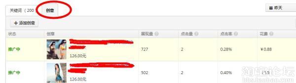按上圖提示設置兩個創意后,就需要不斷的測試淘汰優化。如果你一直在用一個推廣創意在推廣,即便你做的再好,也要去建立第二個推廣創意,因為你絕對可以更好。而且往往你認為不起眼的主圖,在經過市場的檢驗后,很有可能點擊率出奇的高,這就是我們個人與市場的偏差。兩個創意不能主圖和關鍵詞同時不一樣,那樣你永遠都不知道什么是對的,什么是錯的,要把主圖和廣告詞分開測試,用同樣的主圖測試不用的關鍵詞,然后再用同樣的關鍵詞,測試不同的主圖,逐個優化,不能心急!一般一個測試需要一周左右,如果時間太短,很有可能有偶然性,如果時間太長影響優化效率。