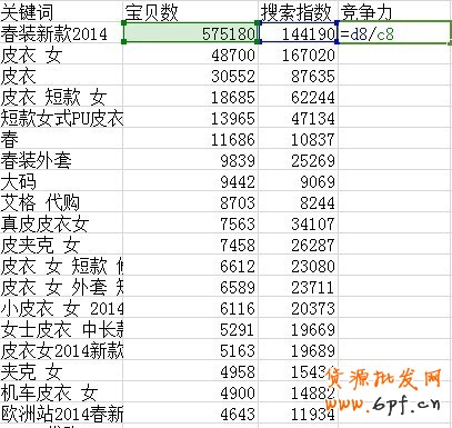01把所有的詞復制下來,放到EXCEL表格中,如圖。找出競爭寶貝數