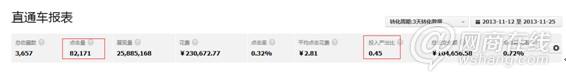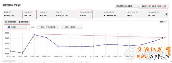 11.12-11.25期間點擊量為82171,平均點擊花費為2.81,根據中老年女裝市場情況,這樣的平均點擊單價偏高,那么我們從直通車的流量來源逐個開始分析。