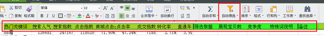 篩選之后我們的需要的詞就集合起來了(到這一步的時(shí)候,我已經(jīng)可以脫離數(shù)據(jù),只看篩選數(shù)據(jù)這一欄,篩選維度依據(jù)越多的詞,越符合我的寶貝標(biāo)題,但是還要繼續(xù),不夠)。