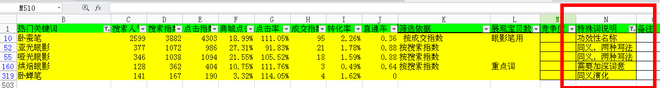 c.有一列是“特殊詞說明”,這列需要重視,一些錯(cuò)誤演化詞,功效同意詞,自己不了解意思需要推敲的詞等,一定要記得備注下,比如“啞光 口紅”和“亞光 口紅”,眼影筆下面的“臥蠶筆”“臥蟬筆”等等,你會(huì)淘到意想不到讓你豁然開朗的一些好詞。