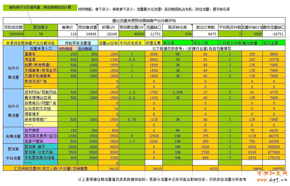 量化目的—分解目標—預估產出—劃分流量引入—參考轉化—評估達成—量化完成率